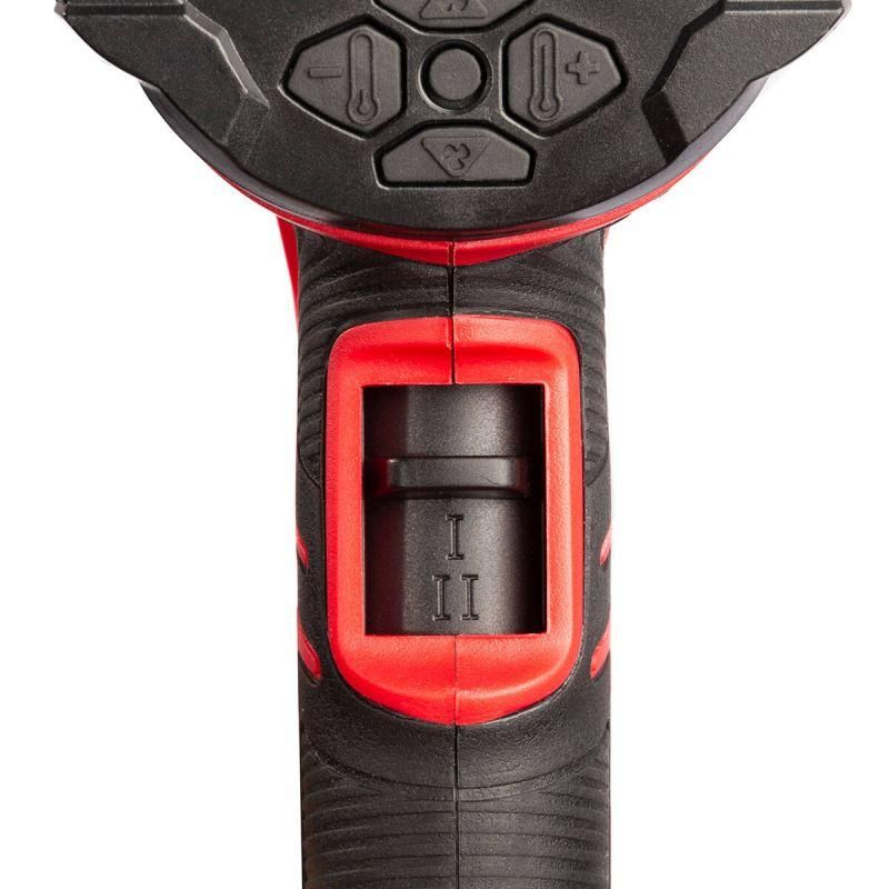 • В комплекте: • фен • 4 насадки: редукционная, рефлекторная, широкая щелевая, стеклозащитная • пластиковый кейс • Мощность: 2000 Вт • Два режима нагрева спирали: • 1 – 50 °C • 2 – 70/600 °C • Два режима воздушного потока: • 1 – 200 л/мин • 2 – 500 л/мин • Напряжение: 230 В / 50 Гц • Двухкомпонентная основа нагревательного элемента с керамическими вставками • Рукоятка двухкомпонентная закрытого пистолетного типа • Дисплей LCD • Режим холодной продувки • Термопредохранитель перегрева нагревательного элемента • Вес комплекта: 1.5 кг • Вес инструмента: 0.8 кг • Габариты кейса: 300х300х95 мм