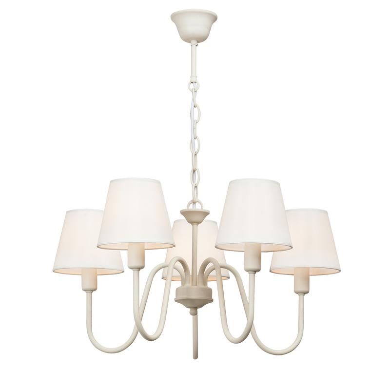 Люстра Vitaluce V3339/5 на пять ламп под цоколь Е14 в стиле изысканном стиле модерн, может украсить вашу гостиную, кухню или спальню. Цвет арматуры - бежевый. Возможна установка светодиодных, энергосберегающих, филаментных или ламп накаливания. Площадь освещения при использовании ламп накаливания составляет 15 м2. При использовании светодиодной лампы мощностью до 8 Вт площадь освещения может быть увеличена до 18 м2. Лампы в комплект не входят. Параметры изделий: высота - 56 см, диаметр - 56 см. Параметры потолочной чаши: высота - 2,5 см, диаметр - 6,7 см. Тип крепления - крюк. Не рекомендовано для ванных комнат, подходит для установки на натяжной потолок. Прилагается инструкция по сборке и установке.
