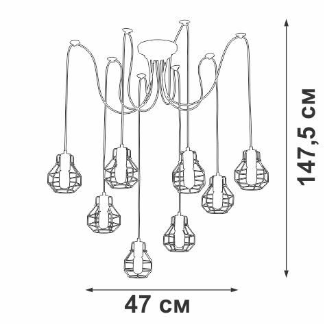 Подвес V4884-7/8S VITALUCE на 8 ламп под цоколь E27 привлекательного и вместе с тем грубоватого стиля лофт прекрасно впишется в помещение с любым другим стилевым наполнением. Цвет арматуры - коньячная бронза. Возможна установка светодиодных, энергосберегающих, филаментных или ламп накаливания. Площадь освещения при использовании ламп накаливания, максимальной мощностью 40 Вт, составляет 24 м2. Лампы в комплект не входят. Размер потолочной чаши: диаметр - 18 см, высота - 5 см. Тип крепления - планка. Длина провода регулируется, высота изделия с минимальной длиной провода - 20 см. Подходит для установки на натяжной потолок. Прилагается инструкция по сборке и установке.