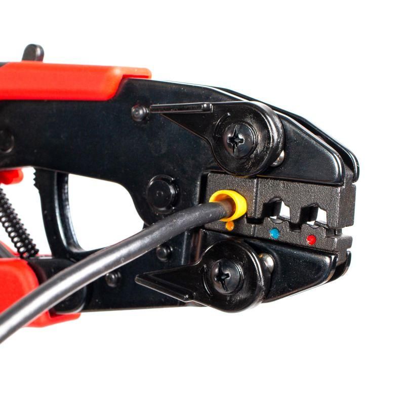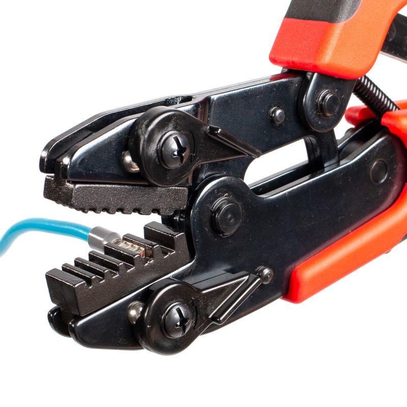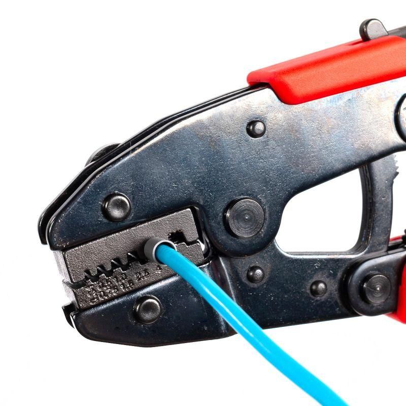 • Состав набора: • пресс-клещи СТB с механизмом быстрой смены матриц • матрицы МПК: 01/11/10/02/03/06/04/14/05 • прочная сумка на молнии • Совместимость: все матрицы серии МПК (КВТ) • Фиксация и высвобождение матриц нажатием на рычаги • Материал корпуса: 3-миллиметровая сталь • Усиленная конструкция 10-дюймовых пресс-клещей с надежной механикой • Храповой механизм, обеспечивающий блокировку обратного хода до завершения полного цикла опрессовки • Устройство разблокировки храпового механизма • Регулятор прижимного усилия матриц • Удлиненные эргономичные рукоятки позволяют работать двумя руками • Прочная сумка с двумя карманами на лицевой стороне, кистевым ремнем и лямкой для крепления на пояс • Вес набора/инструмента: 1.22/0.62 кг • Длина инструмента: 260 мм • Габариты сумки: 280х125х50 мм