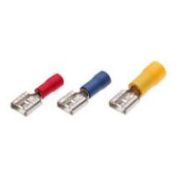 • Предназначены для монтажа быстроразъемных соединений многопроволочных гибких медных проводов методом опрессовки • Материал изоляции: самозатухающий ПВХ. Класс V-0 по UL94 • Термостойкость изоляции: 75 °C • Материал разъема: латунь марки Л63 • Покрытие разъема: электролитическое лужение • Максимальное напряжение: 400 В • Особенности конструкции: • поперечные засечки на внутренней поверхности трубной части разъемов увеличивают механическую прочность соединения с жилой • каждая клемма имеет отверстие для фиксатора замкового типа для прочного механического соединения с разъемом «мама» • Размер контакта определяется шириной «В» клеммы РПИ-П • Комплементарны разъемам РПИ-М • Опрессовка проводника поверх изолирующей манжеты