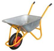 Двухколесная. Грузоподъемность 150 кг. Объем 78 л. Диаметр надувного колеса 390 х 90 мм. Тип колеса 4,80" / 4,00" - 8". Вес тачки 11,8 кг Кузов: стальной оцинкованный. Рама из стальных труб, окрашенная. Прорезиненые ручки. Может использоваться с колесами 77562д, 77567, 77587.