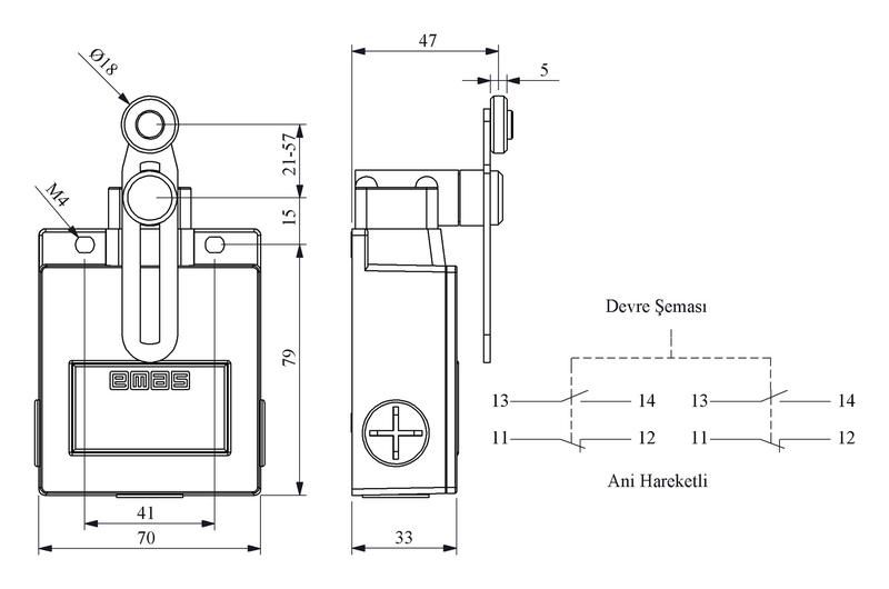 Читать все статьиВыключатель концевой реверсивный ролик 2НО+2НЗ EMAS L54K16MEM122