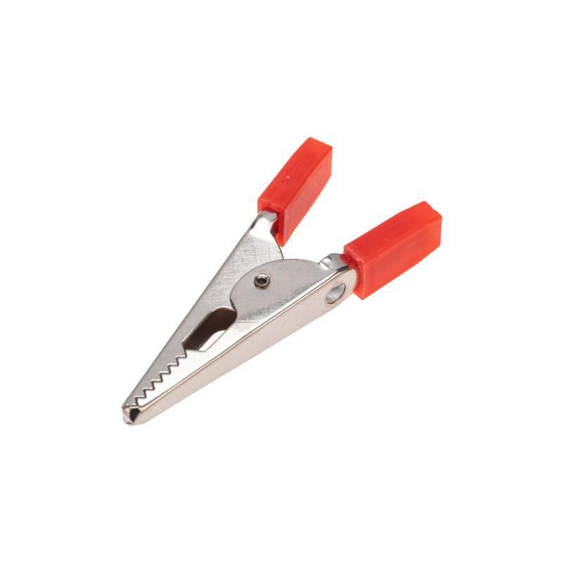 Зажим «крокодил» – это электромеханическое устройство, предназначенное для оперативного соединения или разъединения контакта проводов при выполнении измерительных работ или при монтаже электрических и слаботочных сетей. Зажим состоит из двух деталей с зубцами, которые в середине скреплены специальным штифтом и могут вращаться вокруг оси соединения под определенным углом. К одной из деталей монтируется контактный провод. Сжатие частей обеспечивается пружиной, вставленной с другой стороны штифта. Контактная часть зажима изготавливается из стали с никелированным покрытием. Для обеспечения безопасного использования ручки зажима имеют изоляцию, изготовленную из ПВХ, что исключает случайный контакт с другими токоведущими частями и защищает от поражения электрическим током. Конструкция изделия проста и надежна, что гарантирует долгий срок службы без потери функциональных свойств. Цена указана за штуку. В упаковке поставляется 200 зажимов (100 красных и 100 черных). Минимальная партия отгрузки – 1 упаковка.